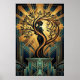 Elegant Art Deco Woman Tree Silhouette Black Gold Poster