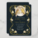 Elegant and modern Art Nouveau wedding design featuring two barn owls against a full moon surrounded by branches and white lily flowers. Matching Items in our shop for a complete party theme.