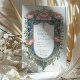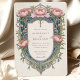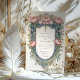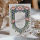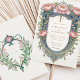 This beautifully crafted wedding invitation set features a captivating Art Nouveau design, showcasing lush pink peonies intertwined with delicate green foliage. The front of the card presents a romantic, nature-inspired arch, framing the initials of the couple. The intricate floral artwork is complemented by soft hues of blush, rose, teal, and sage, creating a harmonious blend of elegance and charm. The back design mirrors this aesthetic, with an ornate, circular floral border perfect for adding a personal touch. This invitation is perfect for couples seeking a timeless and romantic theme for their special day, embodying the sophistication and grace of the Art Nouveau style.