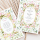 Invite your guests with a piece of art. This stunning wedding invitation captures the elegance of the Art Nouveau era, featuring graceful, hand-painted watercolor dogwood blossoms in soft shades of pink and white. The intricate floral vines, with leaves in sage and muted teal green, beautifully intertwine around a unique rectangular frame filled with a warm, antique gold watercolor wash. A central oval, delicately outlined with a faux gold dotted border, holds your personalised wedding details. The reverse side continues the sophisticated design, offering a perfectly coordinated space for "The Finer Details." This invitation is ideal for a vintage, artistic, or romantic garden wedding.