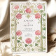 Invite your guests in timeless style with this exquisite wedding invitation inspired by the beauty of the Art Nouveau movement. The design features a delicate and intricate border of stylised pink roses and vining green leaves, creating a stunning frame for your wedding details. The soft watercolor texture and classic typography evoke a sense of vintage romance and artistic elegance. Perfect for a garden wedding, a classic celebration, or for any couple with an appreciation for historical art, this invitation is sure to make a beautiful first impression. A customisable monogram at the top adds a personal touch.