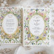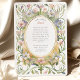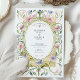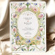 Invite your guests with a masterpiece of Art Nouveau elegance. This stunning wedding invitation features an intricate, hand-painted watercolor border filled with stylised spring flowers in a romantic palette of pink, mauve, lavender, and periwinkle blue. Graceful, swirling vines and leaves are woven through an architectural frame with a warm, antique gold wash, creating a look reminiscent of beautiful stained glass. A sophisticated faux gold oval elegantly frames your wedding details, adding a touch of luxury. Perfect for a spring garden affair, a vintage-themed celebration, or for any couple who appreciates fine art, this invitation sets a truly unforgettable tone.