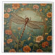 Elegant Art Nouveau Spring green Dragonfly Tile
