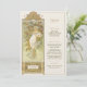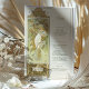 This elegant wedding menu card showcases a stunning Art Nouveau design inspired by the works of Alphonse Mucha. Featuring an exquisite illustration of a graceful woman surrounded by intricate floral and nature-inspired details, this menu blends timeless beauty with romantic elegance. The front presents the wedding menu in refined typography, while the back continues the Mucha-inspired art with a stylish floral motif and personalised wedding details. Ideal for couples seeking a vintage yet sophisticated aesthetic, this menu card adds an artistic touch to your wedding celebration.