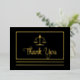 Simple, elegant and modern black graduation or professional attorney or other legal professional "Thank You" with real gold foil front law scales of justice and text with rectangular frame and double bottom lines and back black text postcard design with back template for return address. Original design by Holiday Hearts Designs (all rights reserved).