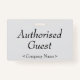 This classy badge design features the message "Authorised Guest", and a customisable company name or other custom message. A badge like this could be used to identify that somebody at a workplace or business is an authorised guest/visitor. [~Z0000307]