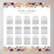 This rustic floral wedding seating chart accommodates 15 tables with up to 10 guests at each table. Pretty autumn flowers create a border at the top and bottom of the chart. Customise with the couple's names at the top, then add the wedding guests' names under each table heading. Matching wedding decor and stationery is available in our Autumn Elegance Fall Wedding Collection.