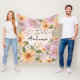 Elegant Autumn Floral and script Pink Green Fleece Blanket