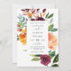 This pretty autumn wedding invitation features a fall wedding bouquet behind a white rectangle frame and the wedding details. The bouquet includes peach, boysenberry, and burnt orange roses with lush green foliage and dusty purple leaves. The modern typography and elegant floral create a timeless wedding invitation. Personalise the invite with your wedding details. Matching wedding stationery can be found in our "Autumn Elegance" collection.