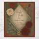 This elegant wedding design blends the rich tones of fall with the quiet stillness of early winter. A gold diamond frame sits gracefully at the centre of a softly textured background with a subtle shimmer, surrounded by a rustic floral arrangement of red dahlias, beige roses, burgundy leaves, pine accents, and delicate foliage. The warm hues and moody atmosphere evoke a sense of calm and romance, perfect for a late fall or early winter celebration. With its seasonal bouquet and vintage charm, this design offers a timeless aesthetic for couples seeking a refined yet nature-inspired wedding style.