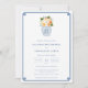 Blue and white ginger jar vase filled with fall-toned flowers and a "Greek Key" border and pattern backer. I've set the template up for a wedding invitation but all of the text fields are customisable to your needs. You can move, delete or add text fields by entering the design tool. You can also change the contrast colour of the Greek Key border on the front and the pattern on the back (shown here as a dark blue) to any colour you like by entering the design tool (underneath the text customisation area, click to "customise further") then changing the background colour on each side.