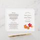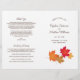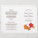 Fall themed wedding ceremony program design with ivory background features vibrant fall foliage in yellow, gold, orange, copper, and red colours. Personalise the chocolate brown custom text for your bridal party, ceremony information, and thank you message. Note: these text weight paper programs arrive flat and require folding to assemble.
