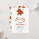 This elegant fall birthday invitation is perfect for a modern autumn birthday. The simple design features orange fall leaves with elegant black and orange typography on a white background.