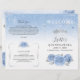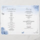 Create your own elegant baby blue and silver quinceanera programs using a simple DIY template that you can add your personalised text to. The floral design by Raphaela Wilson features light blue roses accented in faux metallic silver, a royal princess tiara / crown, butterfly confetti and a fancy filigree border. The typography ties together chic calligraphy script and modern fonts, but feel free to change the style to your preference. This pretty folded sheet of paper can serve as lovely watercolor wedding programs using a dusty blue theme, or even for a winter wonderland sweet 15 / 16 birthday party, among other special occasions as all wording can be repurposed. Be sure to enter your personalised details, which include names, location event details, order of service / mass ceremony, the honoured party of damas and chambelanes, and traditional thank you message. Your quince program may be held onto as a cherished keepsake long after the special day has passed. Enjoy creating! Category: elegant wedding programs and ideas; Cinderella wedding program; and folded quinceañera program template schedule. Silver and baby blue quince theme colours: light blue, powder pastel blue, light grey, dark grey, silver and white.