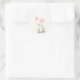 A hand sketched baby elephant with its mother play with pink heart shape balloons they are holding in their trunks as one heart shape pink balloon sails away. The background of the sticker is set with ivory. Matching invitations and thank you notes for a baby shower are available.