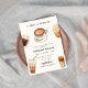 The "Baby is Brewing Coffee" baby shower invitation combines elegance and warmth with a coffee-themed design. Featuring soft colours and illustrations of coffee cups, it sets a cosy, inviting tone. Surrounding the design are various coffee types like lattes and cappuccinos, adding charm and playfulness. It’s a stylish, modern invitation perfect for a coffee-loving mum-to-be.