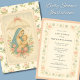Child under a soft umbrella with heavenly raindrops. Surrounded by delicate roses and blue forget-me-nots, and set upon a coordinating floral background, this design is perfect for celebrating the gift of new life under Our Lady’s loving mantle. Fully customisable with your event details. A beautiful choice for a Marian-themed or traditional Catholic shower.