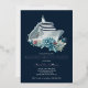 Elegant and unique cruise ship bachelorette party invitation with real gold, silver, or rose gold foil. Personalise it with the future bride's name and the party details including the dates, cruise line, departure port, RSVP information for your bridesmaids. The design features a beautiful watercolor boat and beautiful flowers on a navy blue background.