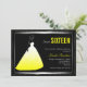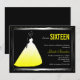 Sweet sixteen invite featuring elegant modern ball gown in white and yellow on a sophisticated background. Personalise this invite with your name and surprise your friends and family with this unique one of a kind invite making them look forward to your event. Let your party be a hit starting from the invites. Also available stickers labels stamps in our store.