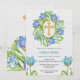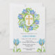 © 2023 Socialite Designs & LICENCORS. Beautiful baptism or christening invitation with a gold cross and tulip frame. A wonderful invitation to invite family and friends to attend the event and gathering afterwards.