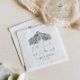 Enhance your wedding reception with our elegant black and white design, featuring a unique hand drawn barn illustration, and the quote "eat, drink, and be married", in modern calligraphy. Customised with the couple's names and special date, this minimalist design adds a personal sophisticated touch for any size wedding celebration or day after brunch.