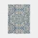 Elegant Baroque Blue Damask Brocade on White Fleece Blanket