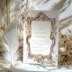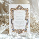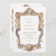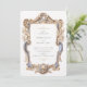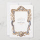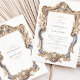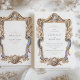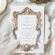 Experience the grandeur of the Baroque era with this beautifully crafted wedding invitation. The intricate design features a lavish frame in shades of gold, ivory, azure, and slate, with opulent flourishes that evoke the exuberance of Baroque art. The invitation is adorned with an emblem that subtly incorporates a monogram within a shield, surrounded by a delicate arrangement of acanthus leaves, a hallmark of classical ornamentation. Printed on high-quality paper with a luxurious texture, this invitation will set the tone for a wedding that is both elegant and timeless. Perfect for couples who appreciate the richness of historical artistry and wish to imbue their special day with a sense of classical sophistication.