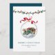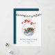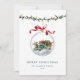 This festive holiday card features a cheerful string of Christmas lights stretching across the top, with a glossy bauble ornament with red ribbon bow hanging below—inside, a charming little car carries a Christmas tree, capturing the spirit of cosy winter adventures. “Merry Christmas” is elegantly displayed in modern typography, adding a fresh, stylish touch to the classic scene. On the back, a heartfelt message sends warm wishes for joy, peace, and meaningful moments with loved ones on a teal background, making this card a perfect blend of nostalgia and contemporary charm.