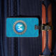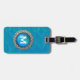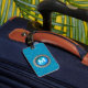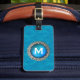 Elegant luggage tag done in a aqua blue velvet tufted look, with graphics of a chic blue bauble set in an ornate silver frame. A bold white one letter monogram decorates the bauble, and white custom text, on the back of the tag is set on a solid aqua blue background. Personalise the monogram and text to suit your needs. Matching travel products are available.