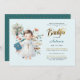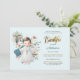 Elegant BAUTIZO Teal Blue Gold Floral Cross Invitation