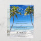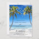 Elegant Beach String Lights Modern Script Wedding Invitation - Our wedding invitation features a beautiful tropical beach with a white sandy beach and palm trees adorned with glowing string lights. The perfect invitation for your beach wedding. The back of the invitation features your favourite photo. Invitation will also be available without photo. Wedding Invitation is part of a collection.