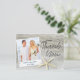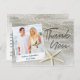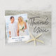 Thank your guests with custom elegant beach wedding photo thank you postcards. The warm, tropical design features a delicate starfish, thank you sand writing, and modern script typography for a handwritten personalised feel. Insert your photo into the placeholder image with ease, and change the backside message if you wish. Stylish and personal, your recipients will love these personalised wedding thank you cards! Category: beach wedding thank you cards; elegant thank you postcards; and wedding thank you postcards. Beach wedding theme colours: tan, white, and blue.