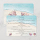 A sophisticated beach wedding design featuring watercolor seashells and pearls on a clean white background. Elegant script and classic serif fonts create a timeless look, perfect for a coastal, destination, or nautical-themed wedding. The soft pastel tones evoke a romantic and serene ocean atmosphere.