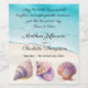A sophisticated beach wedding design featuring watercolor seashells and pearls on a clean white background. Elegant script and classic serif fonts create a timeless look, perfect for a coastal, destination, or nautical-themed wedding. The soft pastel tones evoke a romantic and serene ocean atmosphere.