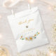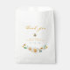 Pretty bridal shower favour bags with "thank you" in yellow modern calligraphy font, a honey bee, and a garland of daisy flowers. Personalise with your details.