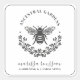 An elegant bee print gardener and landscaper business stickers and labels with laurel in a pretty round logo style. An elegant style in a unique square format card.