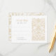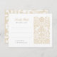 This elegant RSVP card is the perfect complement to your wedding invitation suite. It features a sophisticated beige and ivory colour palette with intricate floral designs that evoke a sense of timeless elegance. The front of the card includes ample space for guests to reply, while the reverse side showcases a beautifully detailed floral pattern, enhancing the luxurious feel of the card. This RSVP card is ideal for a traditional or classic wedding theme, providing a refined and stylish way for your guests to confirm their attendance.