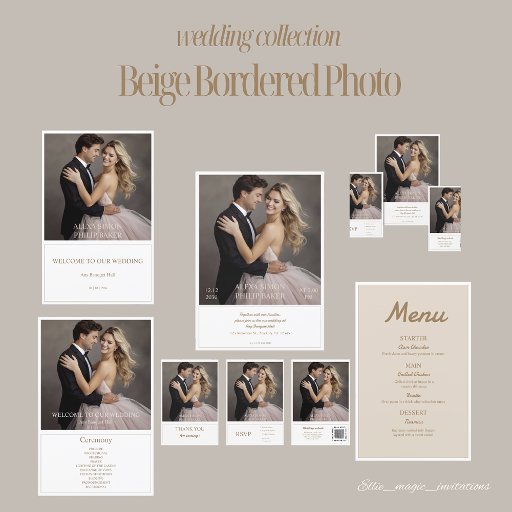 The muted beige and soft blush tones, paired with minimalistic accents, evoke a feeling of understated luxury. This design is ideal for couples seeking an invitation that reflects their romantic and elegant wedding theme. A flawless choice for creating an unforgettable first impression of your special day!