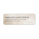 These return address labels feature a minimalist and modern design with a textured beige background that gives a subtle, handcrafted feel. The layout is clean and balanced, showcasing elegant serif typography in black for a sophisticated look. Perfect for formal occasions, the muted earth tones and simple composition convey an understated elegance, making these labels ideal for weddings or special events where clarity and refinement are key.