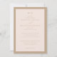 This elegant wedding invitation features a soft beige background with a minimalist layout that emphasizes clean lines and balanced spacing. The design utilizes a mix of serif and script fonts to create a sophisticated and formal look, perfect for a timeless celebration. With its muted color palette and understated aesthetic, the invitation conveys grace and simplicity, making it ideal for couples seeking a refined touch for their special day. The absence of decorative motifs ensures that the focus remains on the important details, while the customizable text allows for personalization without distractions.