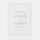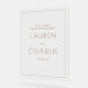 This elegant wedding sign features a minimalistic design with a soft beige background and muted gold text, creating a warm and inviting atmosphere. The layout is centered and balanced, utilizing ample negative space to highlight the typography, which includes a welcoming message and the couple's names in bold serif fonts. The modern style focuses on clarity and sophistication, making it perfect for adding a touch of understated elegance to any wedding celebration.