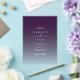 Elegant Acrylic Wedding Invitation – Modern Transparent Design Make a lasting first impression with our luxurious acrylic wedding invitation, featuring a sleek berry violet-to-transparent gradient. This modern and sophisticated design is perfect for couples seeking a chic, minimalist, and high-end wedding aesthetic. Why Choose Our Acrylic Wedding Invitation? Unique Gradient Design – A stunning colour-to-transparent fade, adding an elegant and contemporary touch. Versatile & Stylish – Perfect for modern, berry violet themed weddings. Fully Customisable – Personalise your invitation with your names, wedding date, venue details, and more. Impress Your Guests – A keepsake-worthy invitation that adds a touch of luxury to your wedding suite. Perfect for Any Wedding Theme This invitation complements luxury weddings, minimalist ceremonies, elegant soirées, and gothic wedding themes. The bold contrast of black fading into transparency creates a mesmerising effect, making it an unforgettable part of your wedding stationery. 🖤 Perfect for Berry Violet Weddings Luxury Modern Weddings Minimalist and Contemporary Designs Alternative & Unique Wedding Styles Order Yours Today! Elevate your wedding invitations with this sophisticated, modern acrylic design. Simply enter your details, preview your custom invitation, and place your order effortlessly.