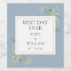 Elegant Best Day Ever Greenery Dusty Blue Wedding Wine Label