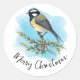 Bring a touch of timeless charm to your holiday gifts with this elegant woodland bird Christmas sticker. Featuring a beautifully illustrated songbird perched on a sprig of holly berries, set against a soft watercolor sky, this design captures the beauty of winter nature. Ideal for sealing holiday cards, decorating gift wrap, or adding a personal touch to party favours.