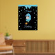 Elegant Birthday genie, magic lamp, gems confetti and turquoise ribbon on black Poster. Text can be personalized!