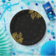 Elegant Birthday Gold Foliage Party Paper Plates. An elegant gold foliage on a black background.
