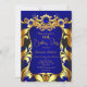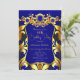 Elegant Birthday Party Blue Gold Black Damask Gems Invitation