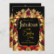 Elegant Birthday Party Red Gold Black Damask Gems Invitation