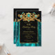 Elegant Birthday Party Teal Blue Silk Gold Gems Invitation