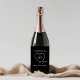 Stylish black and white bottle labels for a 50th wedding anniversary. The design includes a white wreath, the number 50, and names in elegant script calligraphy. Click personalise to add your details or use the design tool for further customisation. Complementary items are also available.